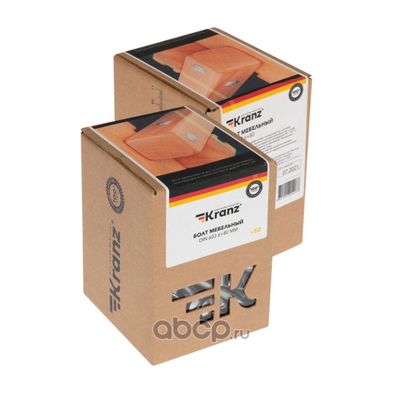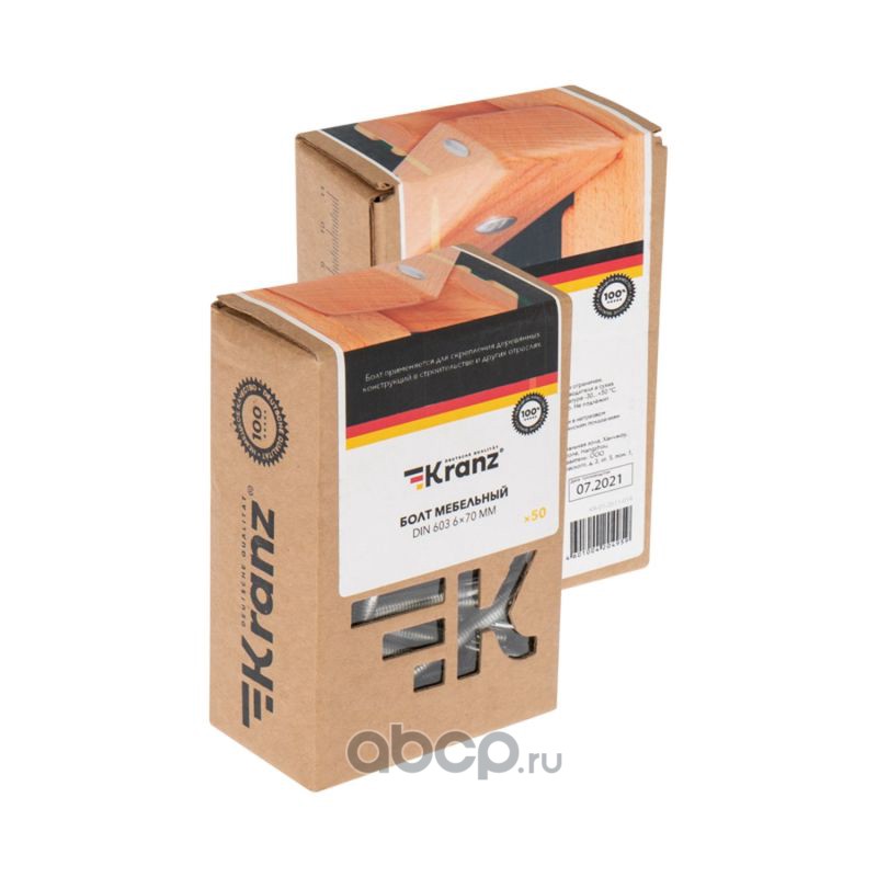 Болт мебельный KRANZ DIN 603, 6х50, короб (50 шт./уп.)