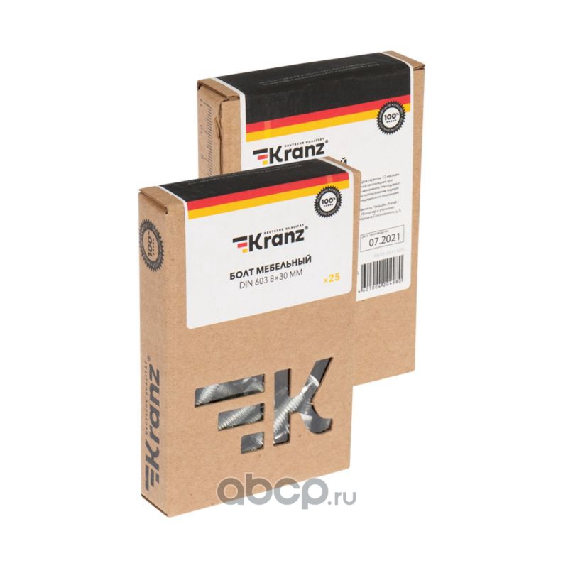 Болт мебельный KRANZ DIN 603, 8х30, короб (25 шт./уп.)