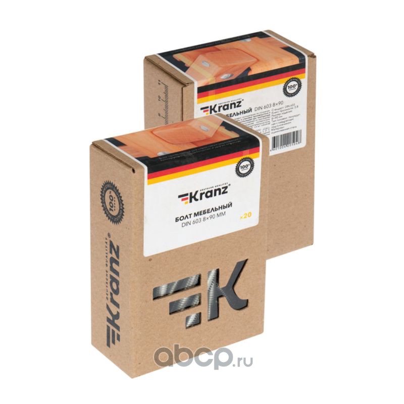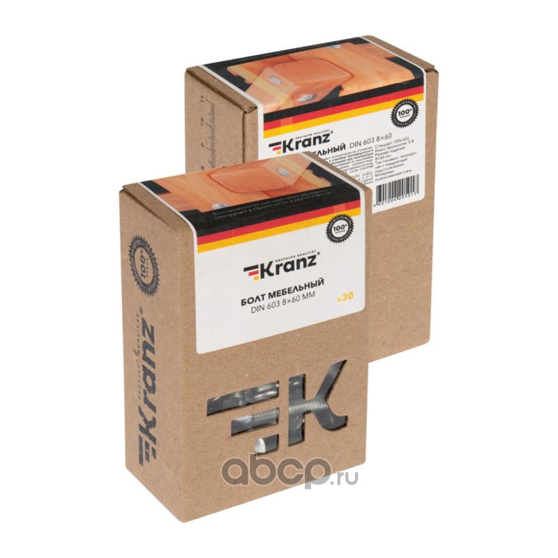 Болт мебельный KRANZ DIN 603, 8х60, короб (30 шт./уп.)