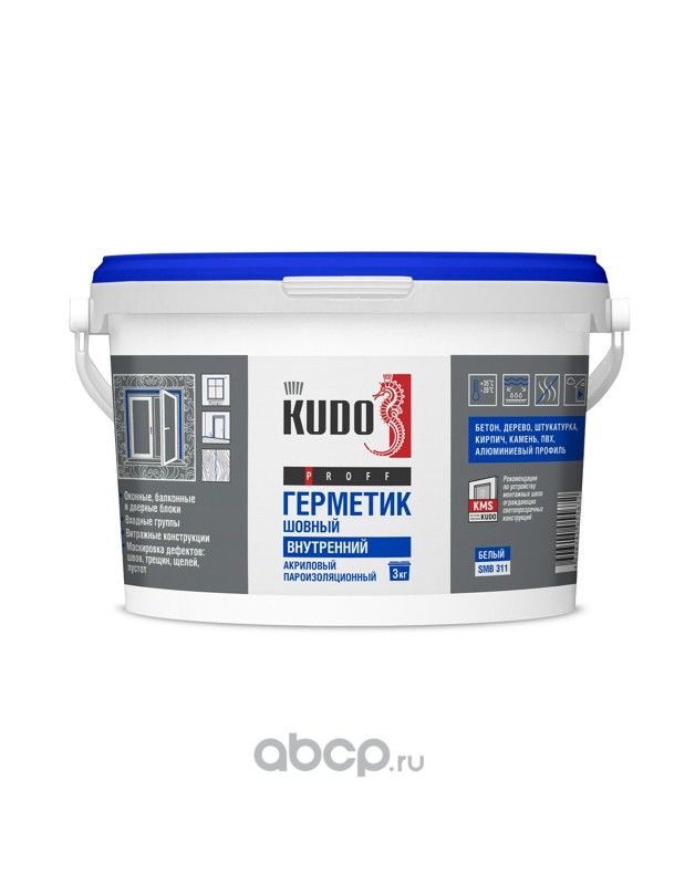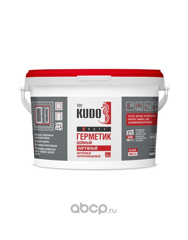 | Kudo | SMB351 | Герметик акриловый KUDO PROFF, наружный, паропроницаемый шовный, для монтажной пены при монтаже окон, белый, 3 кг | ||
