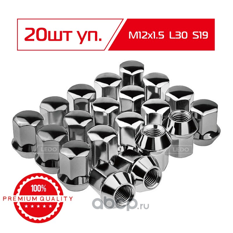 | LEDO | AK00001 | Гайка колеса М12*1.5 L32 S21 хром Premium | ||