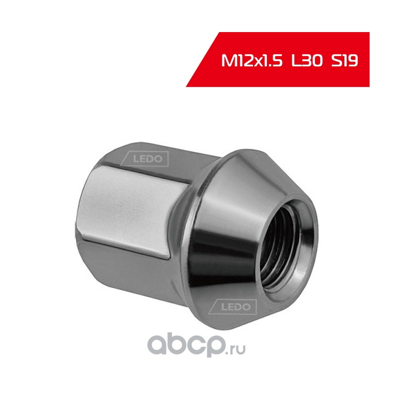 | LEDO | AK78260 | Гайка колеса M12*1.5 L30 S19 конус хром | ||