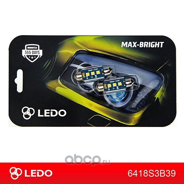 | LEDO | 6418S3B39 | Лампа светодиодная C5W Max-Bright 39mm 3SMD 12V | ||