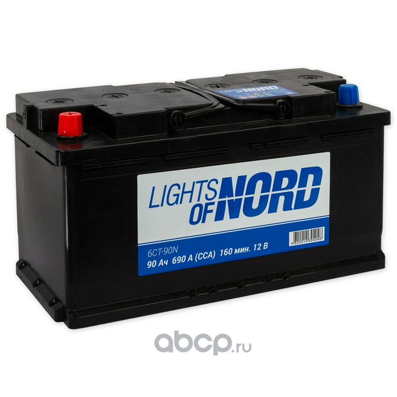 | LIGHTS OF NORD | 6CT90N | Батарея аккумуляторная 90А/ч 690А прямая полярн. стандартные (Европа) клеммы |