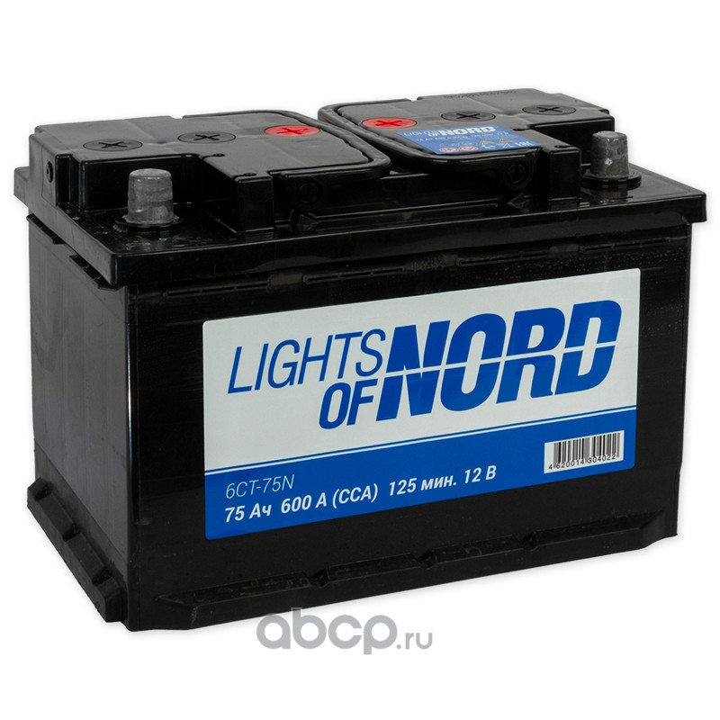 | LIGHTS OF NORD | 6CT75N | Батарея аккумуляторная Lights of Nord 75А/ч 600А 12V Прямая полярн. стандартные клеммы | ||