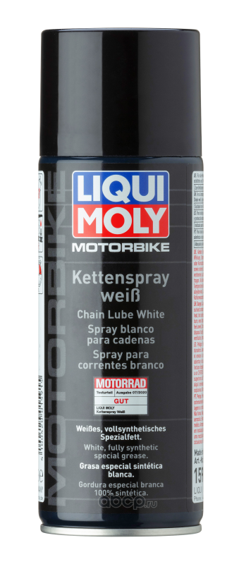 | LIQUI MOLY | 1591 | LiquiMoly Белая цепная смазка д/мотоц. Motorbike Kettenspray weiss (0,4л) | ||