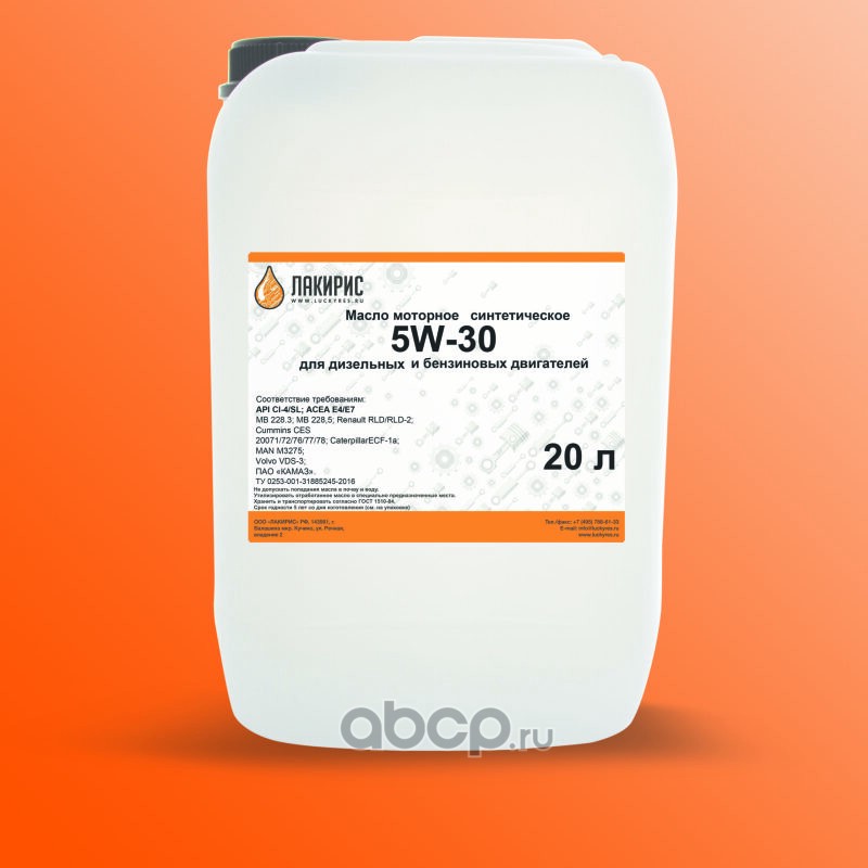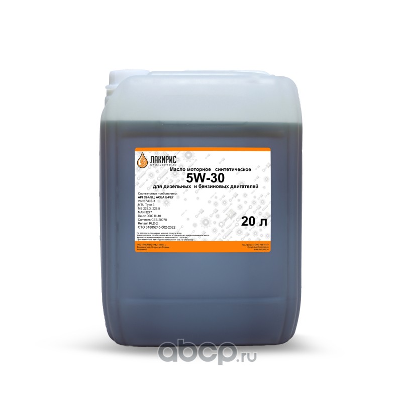 | LUCKYRES | 55570918 | Моторное масло ЛАКИРИС CI-4/SL 5W-30 Синтетическое 20л | ||
