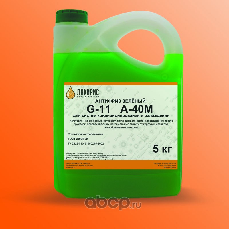 | LUCKYRES | 3365227 | Антифриз ЛАКИРИС А-40М G11 зеленый 5кг | ||