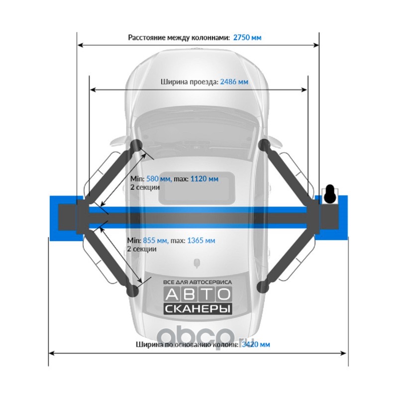 | Launch | N36326 | Подъемник двухстоечный LAUNCH TLT-240SCS L синий, с верхней синхронизацией, г/п 4т., высота 4150 мм. | ||