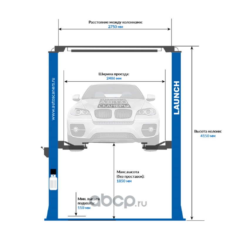 | Launch | N36325 | Подъемник двухстоечный LAUNCH TLT-240SCS синий, с верхней синхронизацией, г/п 4т. | ||
