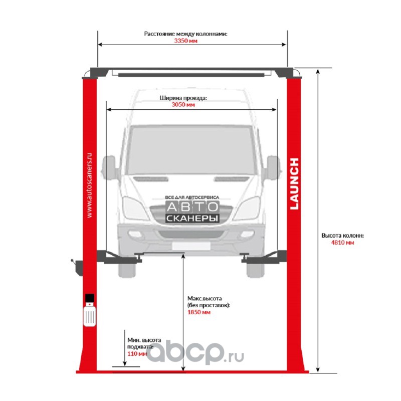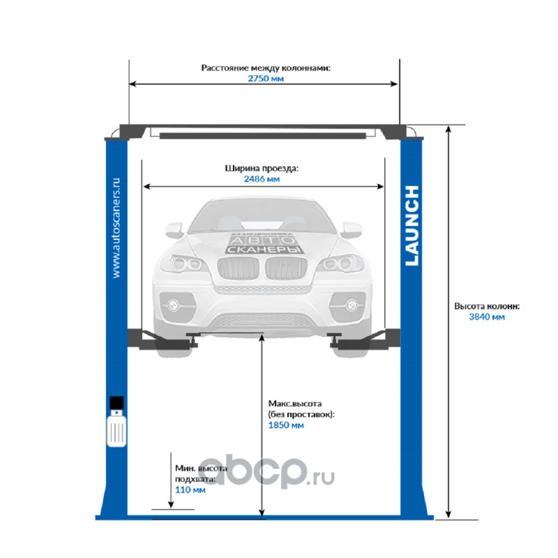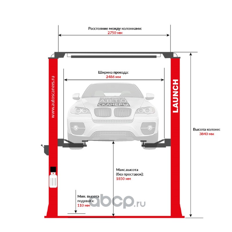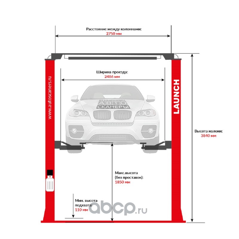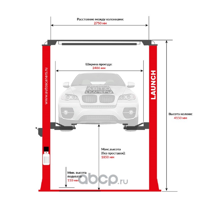 Подъемник двухстоечный LAUNCH TLT-250ATC с верхней синхронизацией, г/п 5,5т., усиленные лапы, высота 4810 мм.