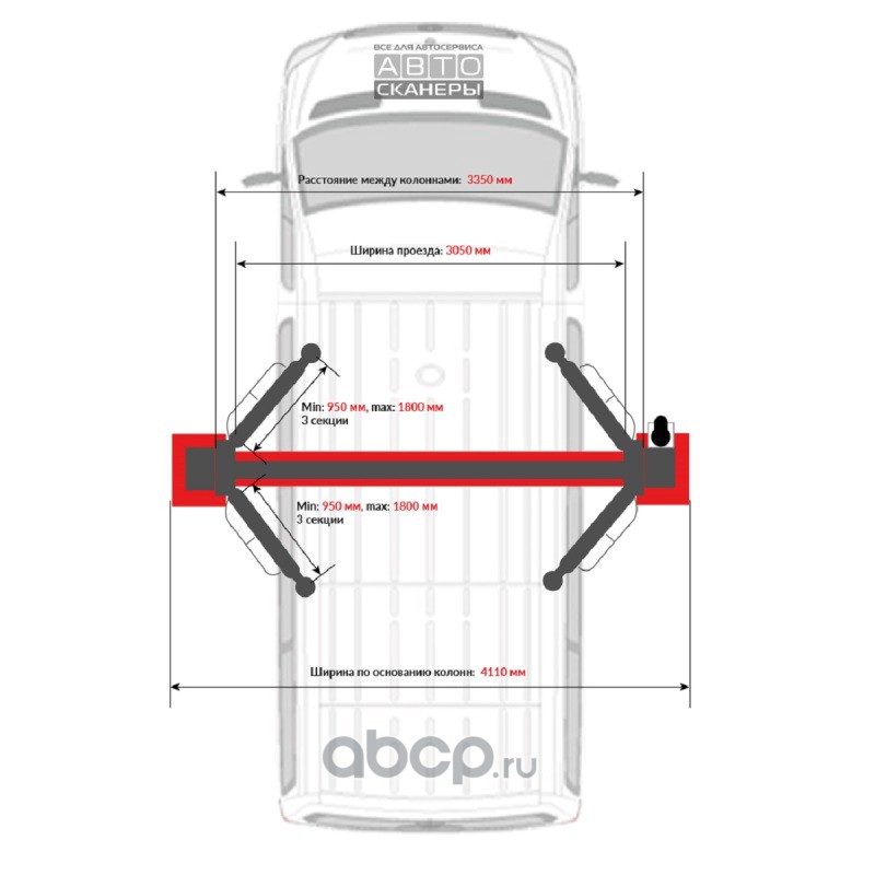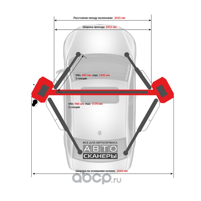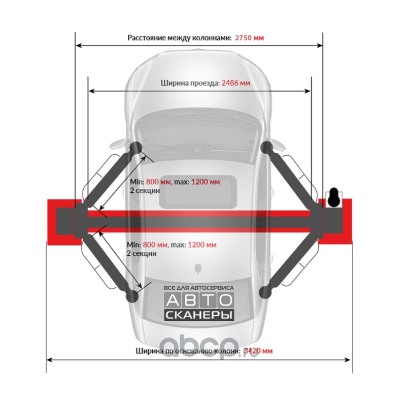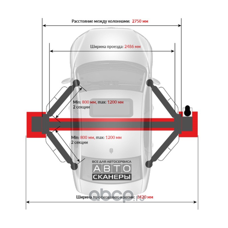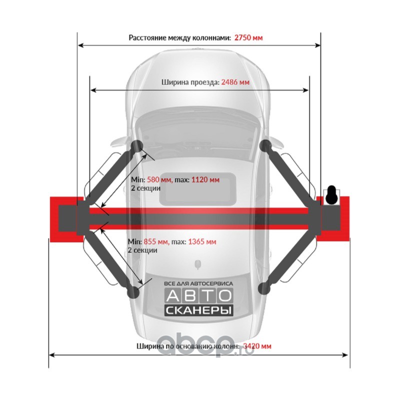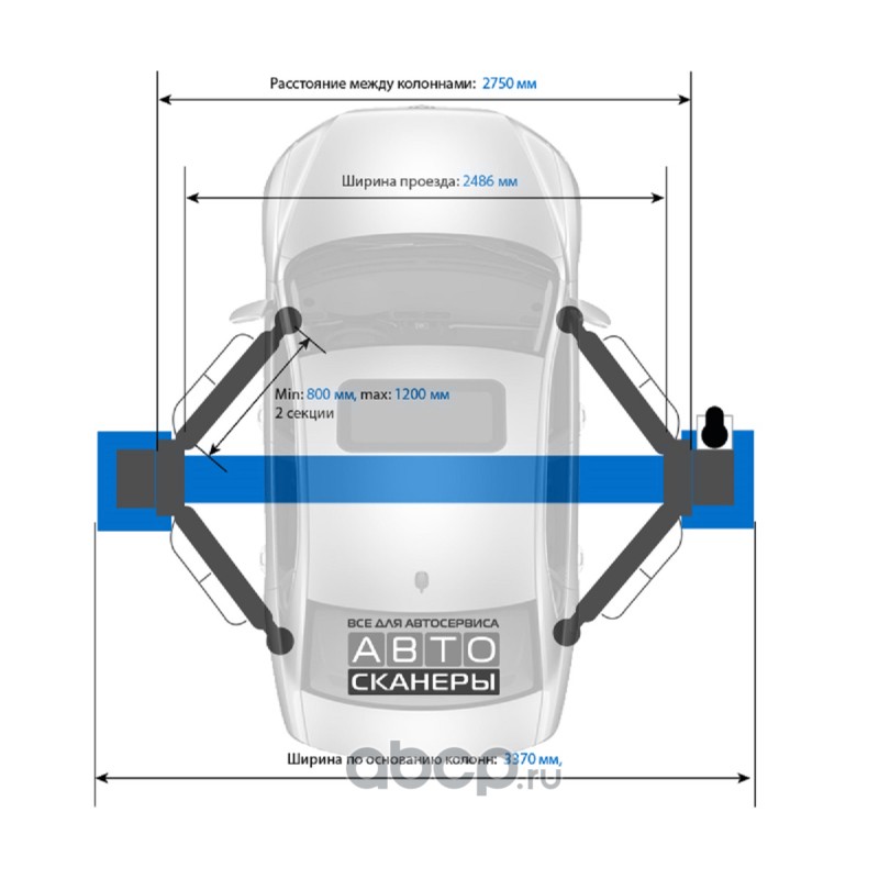 Подъемник двухстоечный LAUNCH TLT-250ATC с верхней синхронизацией, г/п 5,5т., усиленные лапы, высота 4810 мм.