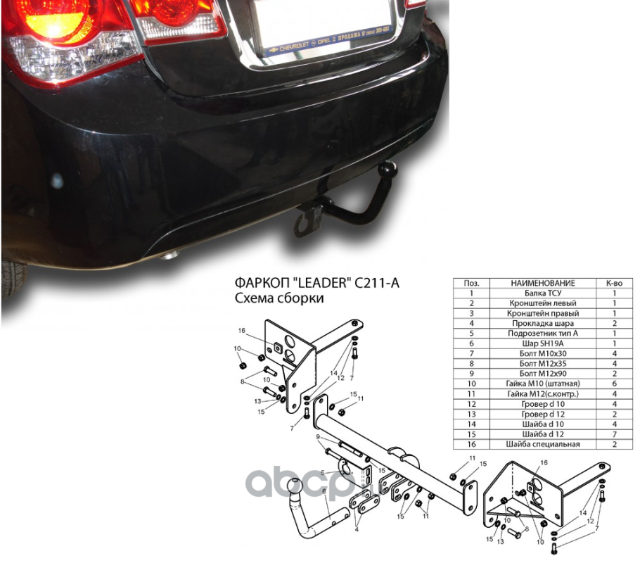 | Leader Plus | C211A | Фаркоп ТСУ для CHEVROLET CRUZE (J300) (седан,хетчбек) 2009-... | ||