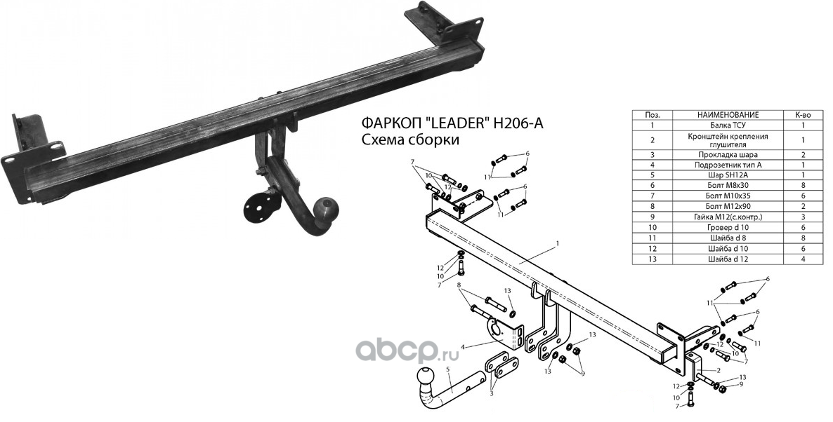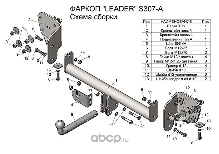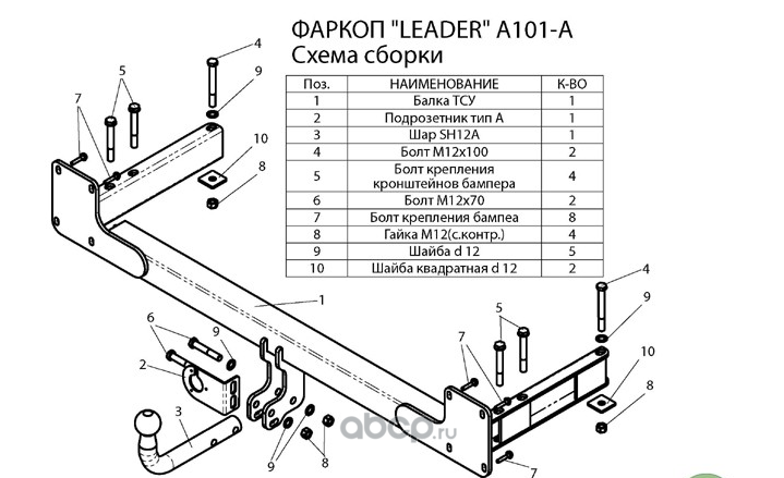| Leader Plus | TVAZ19A | ТСУ (со съемным шаром) для LARGUS (универсал) / LARGUS CROSS | ||