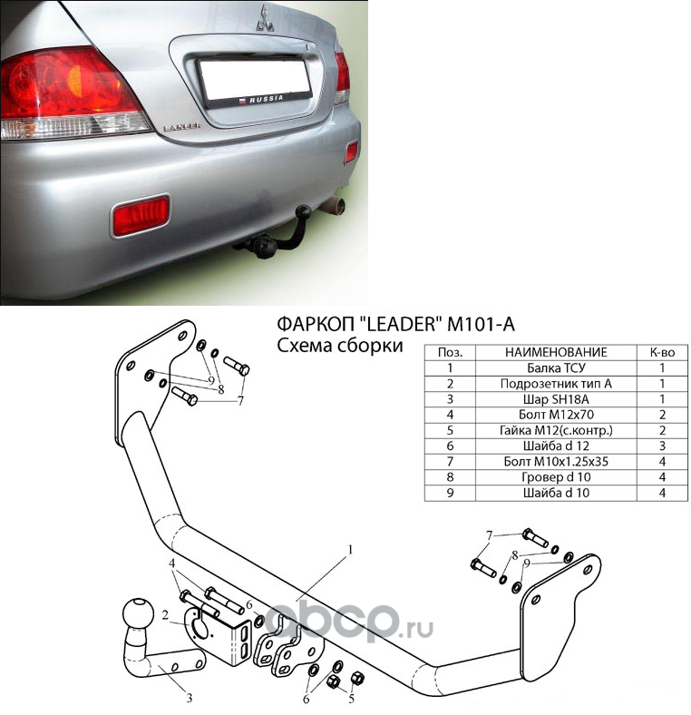 | Leader Plus | M101A | ФАРКОП для MITSUBISHI LANCER (IX) (CS_A) (седан,универсал) 2003-2007) | ||