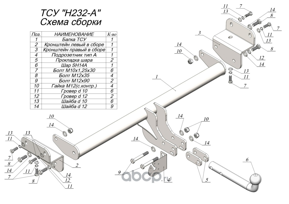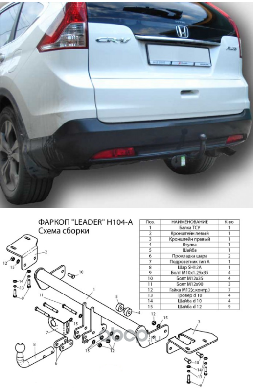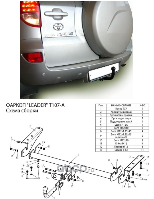 | Leader Plus | T107A | ФАРКОП для TOYOTA RAV 4 (A2;XA3) 2005-2012 | ||