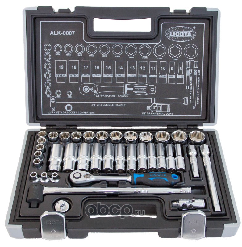 | Licota | ALK0007P | Набор торцевых головок 3/8 12гр. 37пр. 6-24мм spline | ||