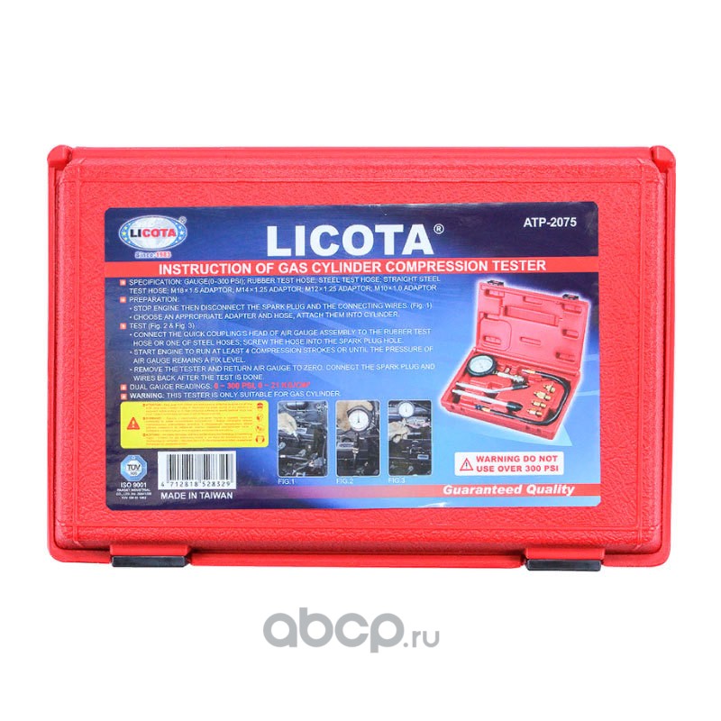 | Licota | ATP2075 | Компрессометр бензиновый, набор с гибкой, 2-мя жесткими насадками и переходниками | ||