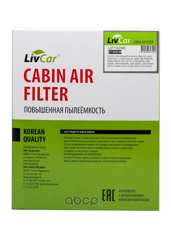 Ассортимент непрерывно расширяется. Технологичные салонные фильтры LivCar изготавливаются с использованием корейских материалов.