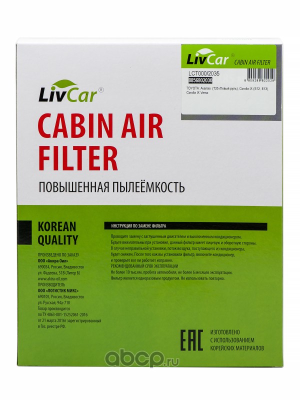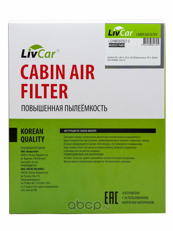 Ассортимент непрерывно расширяется. Технологичные салонные фильтры LivCar изготавливаются с использованием корейских материалов.