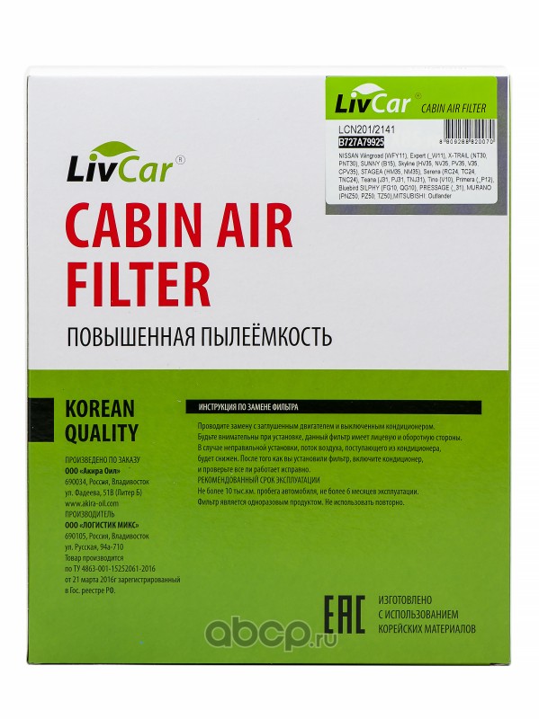 Ассортимент непрерывно расширяется. Технологичные салонные фильтры LivCar изготавливаются с использованием корейских материалов.