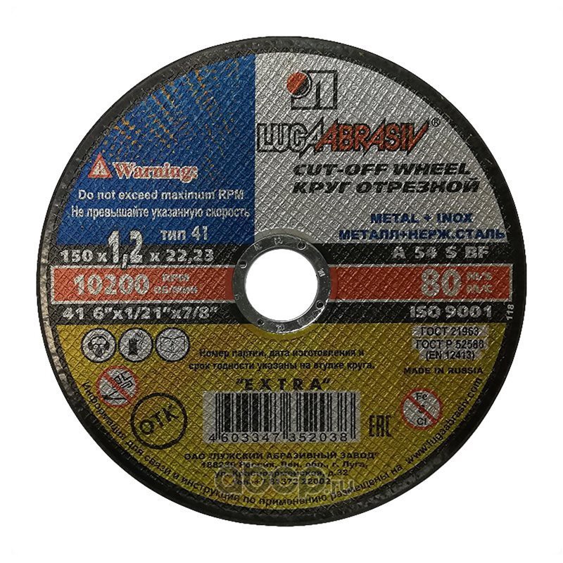 | Luga Abrasiv | 41150122223A54SBF802 | Круг отрезной 150x1.2x22 мм. по металлу+нержавейка LUGA | ||