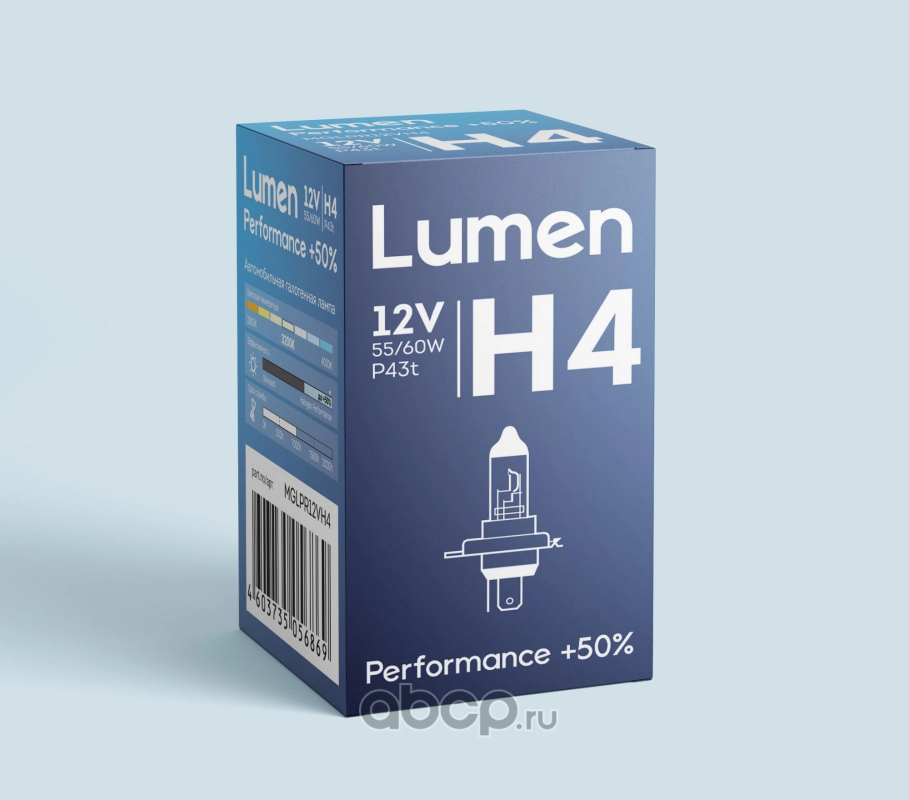 | Lumen | MGLPR12VH4 | Лампа галогеновая Lumen H4 P43t 12В 60/55W 1шт. | ||