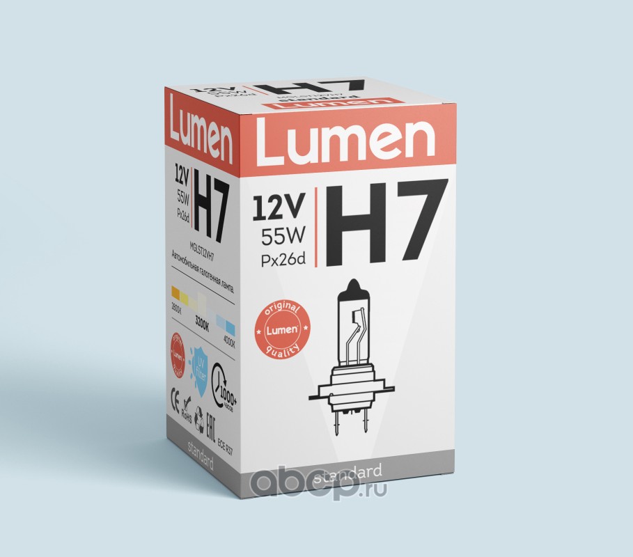 | Lumen | MGLST12VH7 | Галогенная лампа H7 Lumen standart 12V -55W PX26d | ||