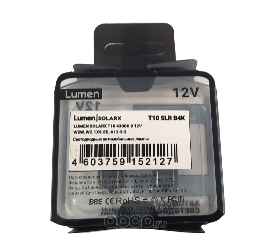 | Lumen | T10SLRB4K | Лампа светодиодная Lumen W5W W2.1x9.5d 12V 4W 4300K 2шт. | ||