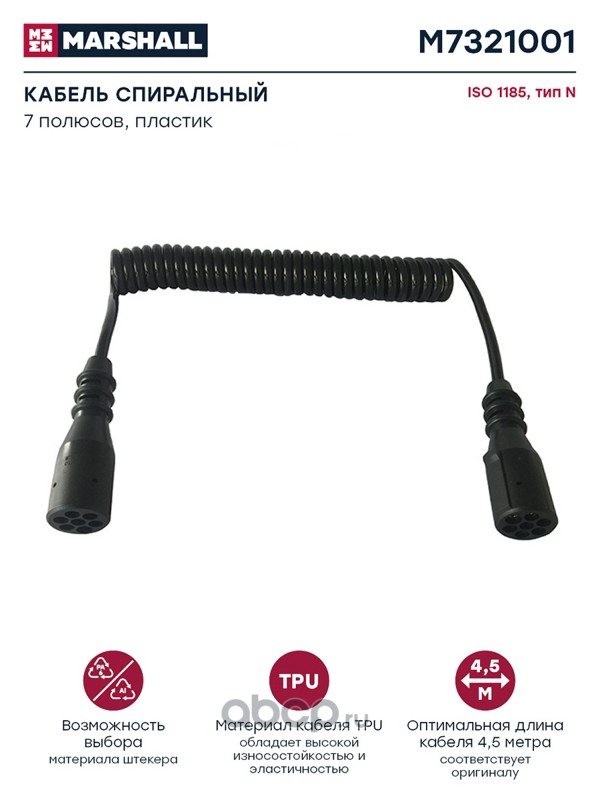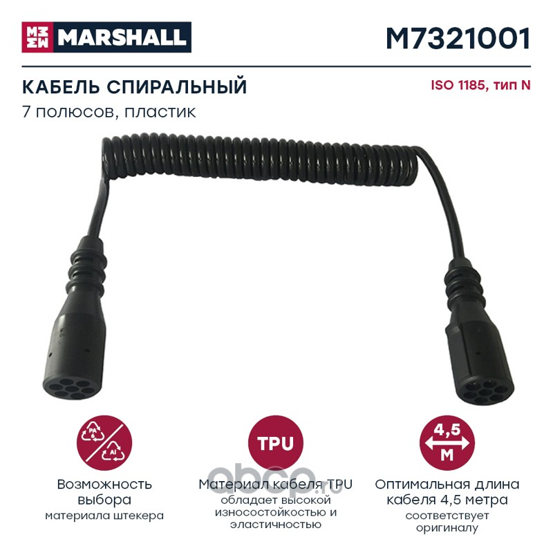 | MARSHALL | M7321001 | Кабель спиральный 7 полюсов, тип N, ISO 1185, пластик цельн, L= 4.5 м (M7321001) | ||