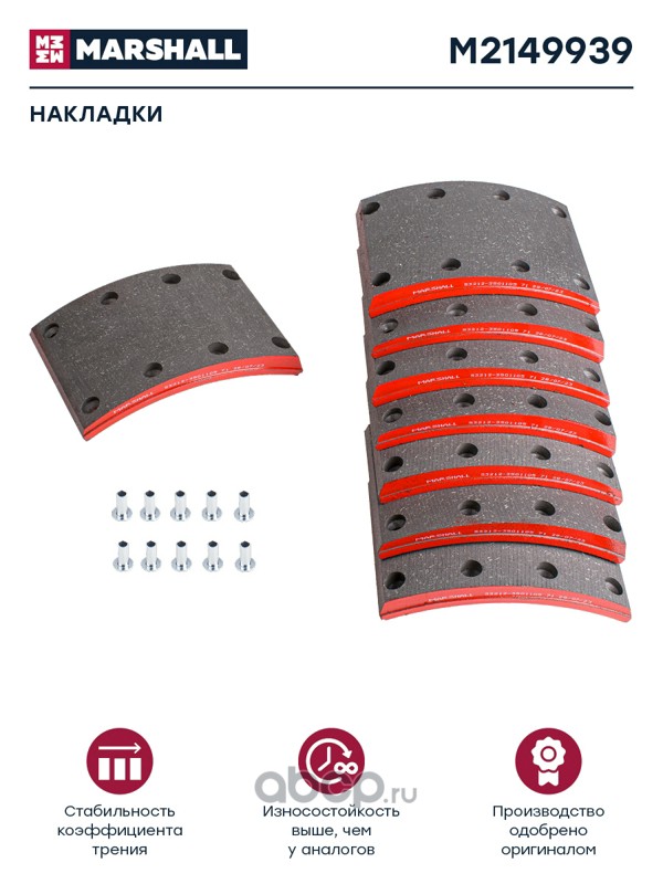 | MARSHALL | M2149939 | Накладки торм. компл. (ном.) (с заклеп.) | ||