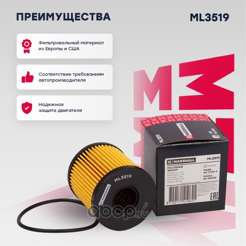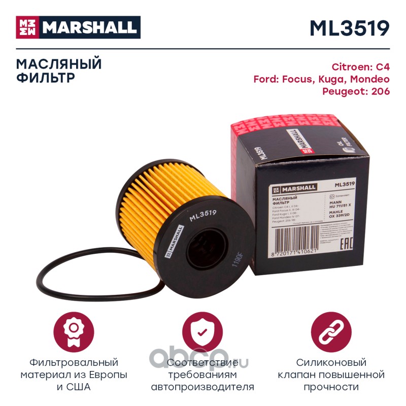 | MARSHALL | ML3519 | Фильтры масляные (легковые) | ||