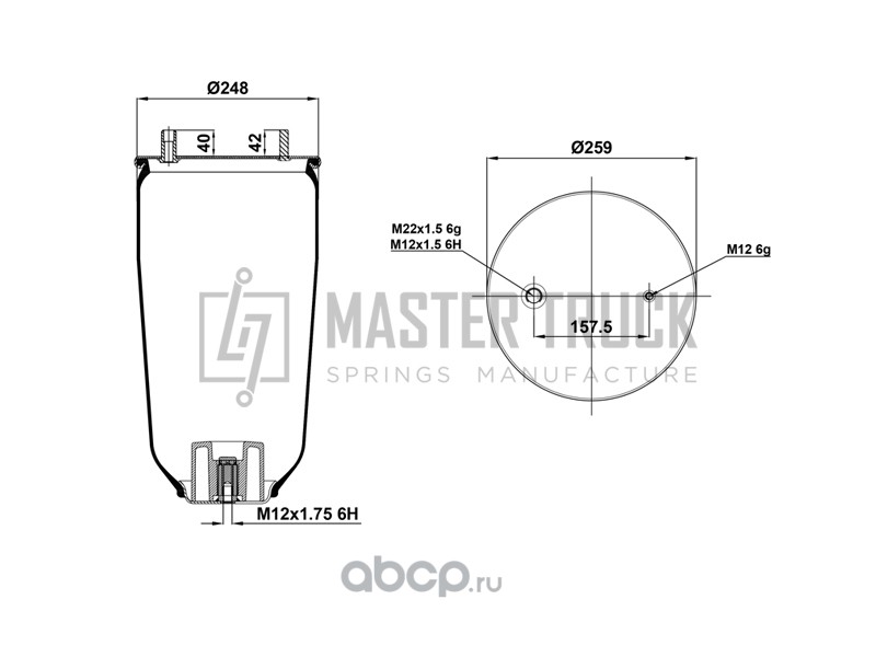 Пневмоподушка без стакана [2шп.M12смещ.25. 1отв.штуц.M22. 1отв.M12] Mercedes-Benz