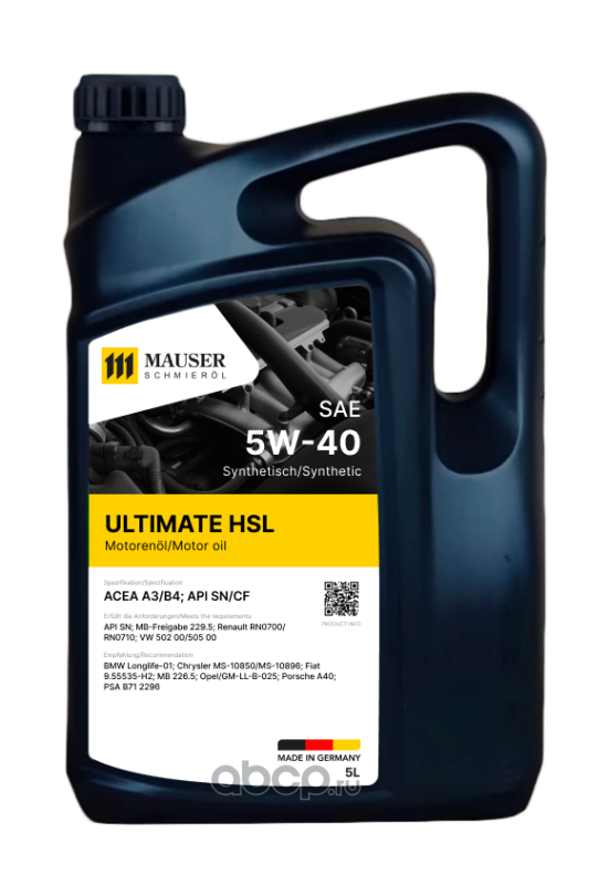 MAUSER 271420005 Масло моторное синтетика MAUSER Ultimate HSL 5W-40 5 л.