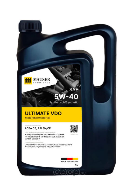 MAUSER 271290004 Масло моторное синтетика MAUSER Ultimate VDO 5W-40 4 л.