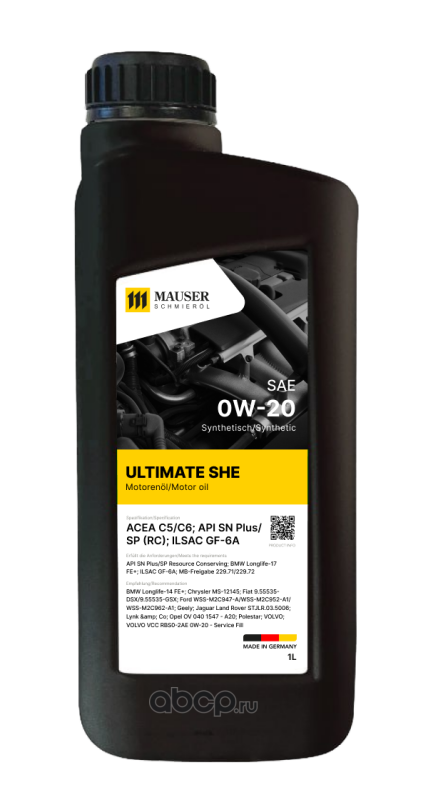 MAUSER 271580001 Масло моторное синтетика MAUSER Ultimate SHE 0W-20 1 л.