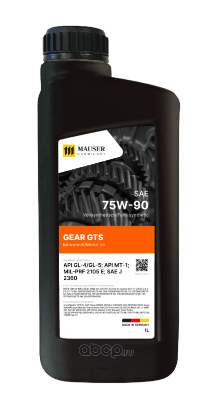 MAUSER 287020001 Масло трансмиссионное MAUSER Gear GTS SAE 75W-90 1 L синтетическое