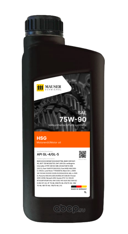 MAUSER 287410001 Масло трансмиссионное MAUSER HSG SAE 75W-90 1 L синтетическое