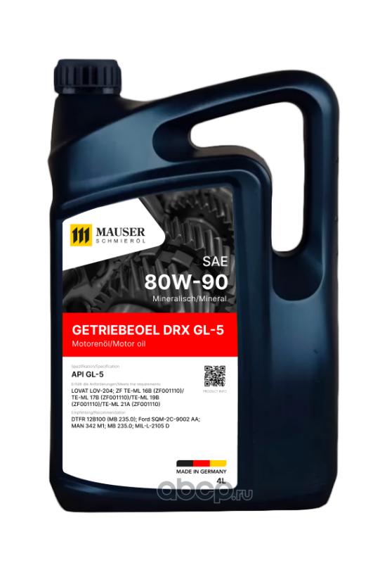 MAUSER 287080004 Масло трансмиссионное MAUSER Getriebeoel DRX GL-5 SAE 80W-90 4 L минеральное