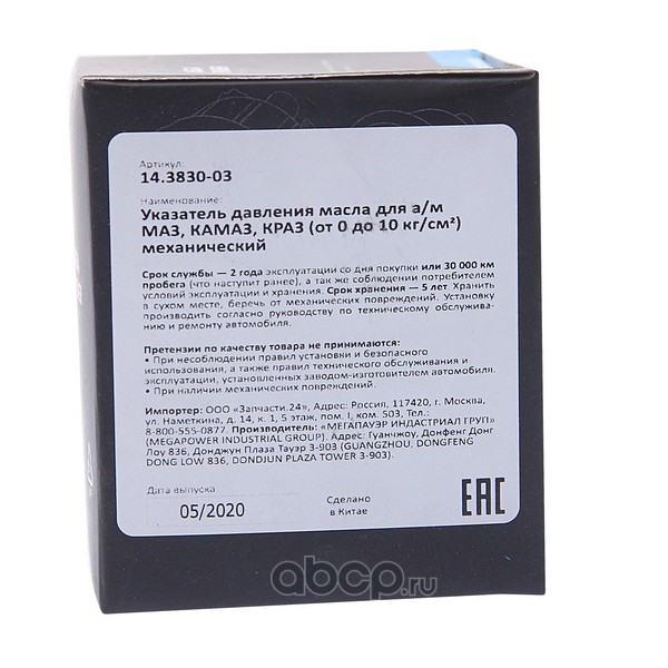 Указатель давления масла МАЗ,КАМАЗ,КРАЗ (от 0 до 10кг/кв.см) механический