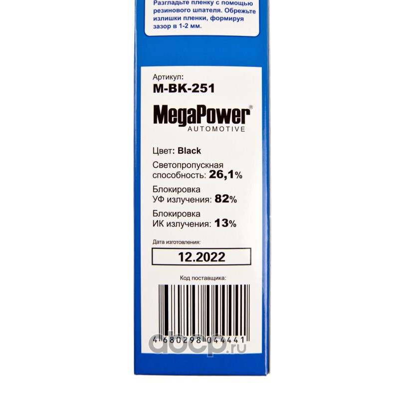 Пленка тонировочная Black 26,1% (блокировка УФ-82% ИК-13%) 50х300см MEGAPOWER /1/50