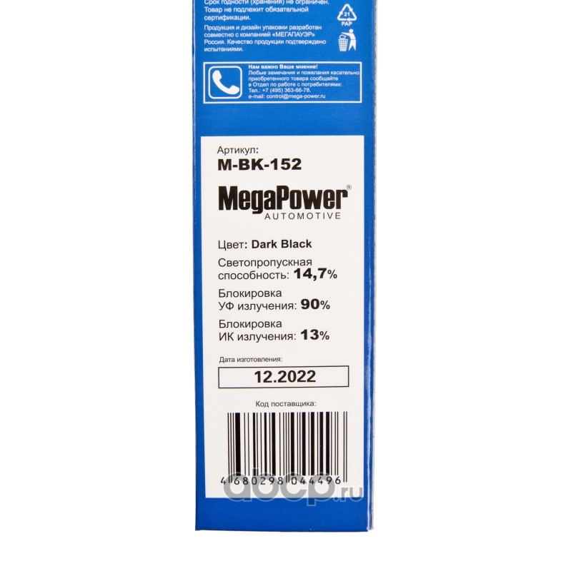 Пленка тонировочная Dark Black 14,7% (блокировка УФ-90% ИК-13%) 50х300см MEGAPOWER /1/50