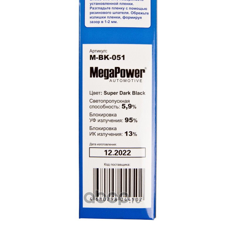 Пленка тонировочная Super Dark Black 5,9% (блокировка УФ-95% ИК-13%) 50х300см MEGAPOWER /1/50