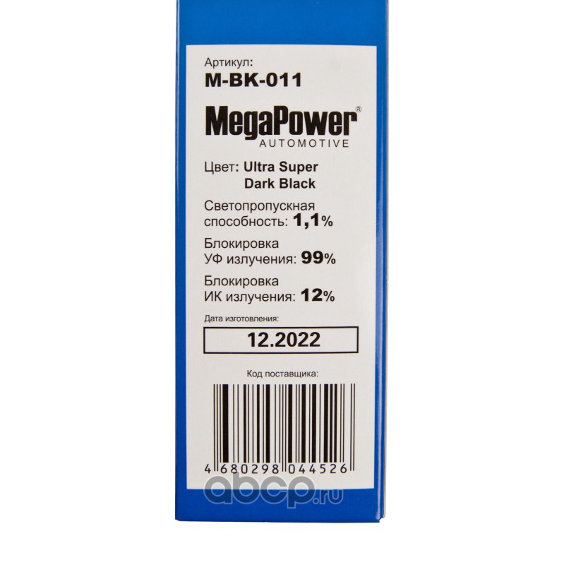 Пленка тонировочная Ultra Super Dark Black 1,1% (блокировка УФ-99% ИК-12%) 50х300см MEGAPOWER /1/50