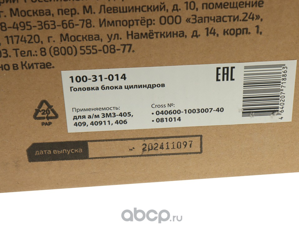 Головка блока ЗМЗ-405,409,40911,406 с клапанами (пятиопорная ЕВРО-0,1,2) в сборе