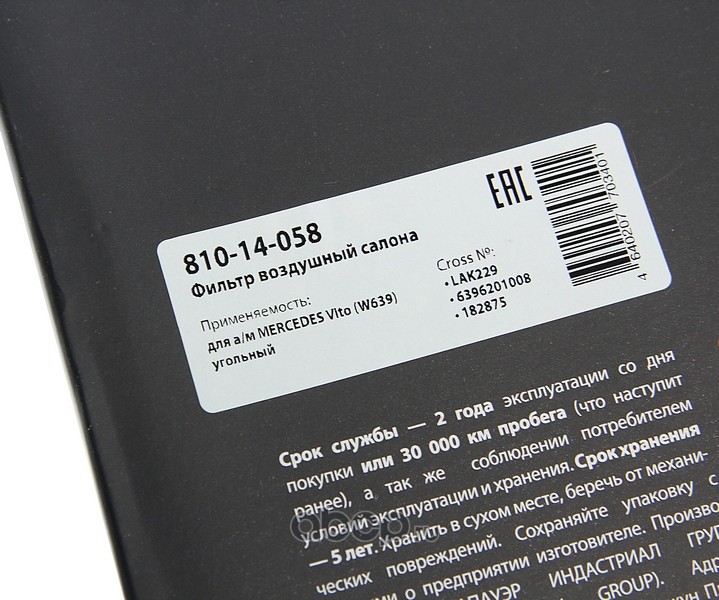 Фильтр воздушный салона MERCEDES Vito (W639) угольный