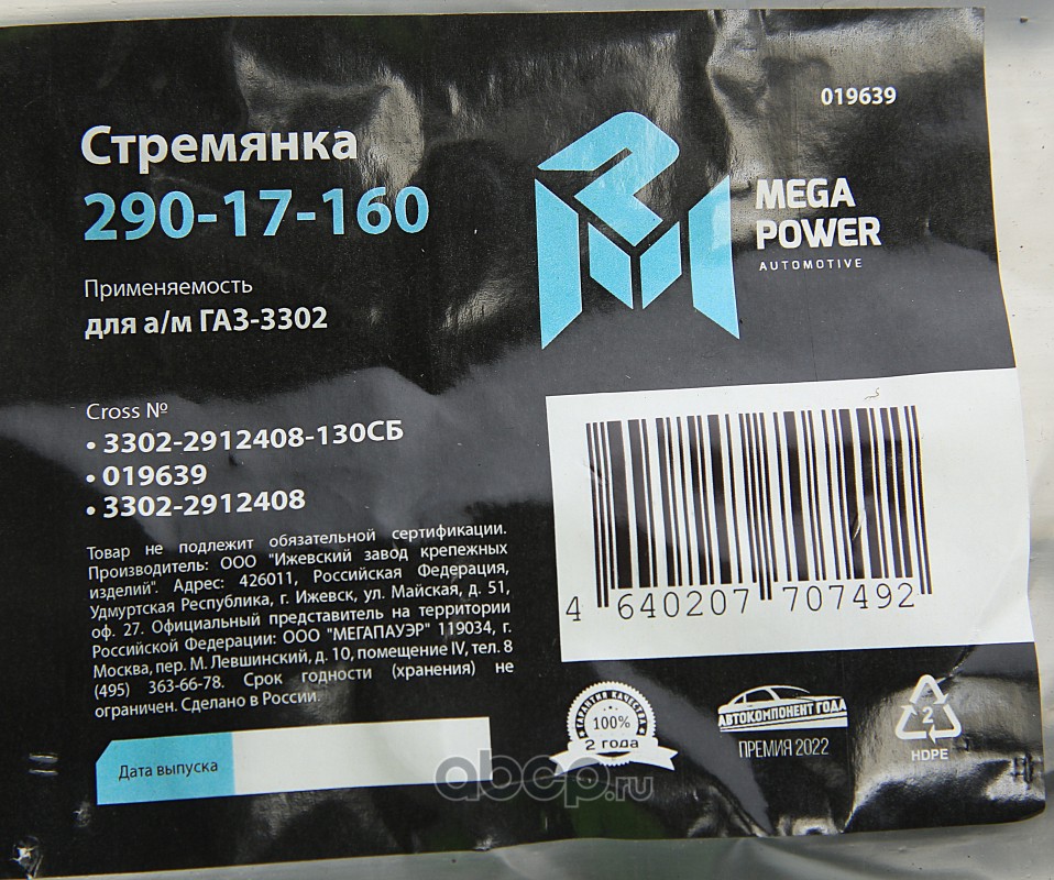 Стремянка ГАЗ-3302 рессоры задней L=170мм;М16х1.5мм длинная усиленная в сборе