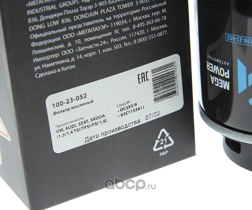 Фильтр масляный VW AUDI SEAT SKODA (1.2/1.4 TSI/TFSI/FSI 1.6)