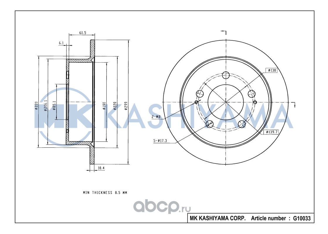 | MK KASHIYAMA | G10033 | Диск тормозной задний[299x10,4] | ||