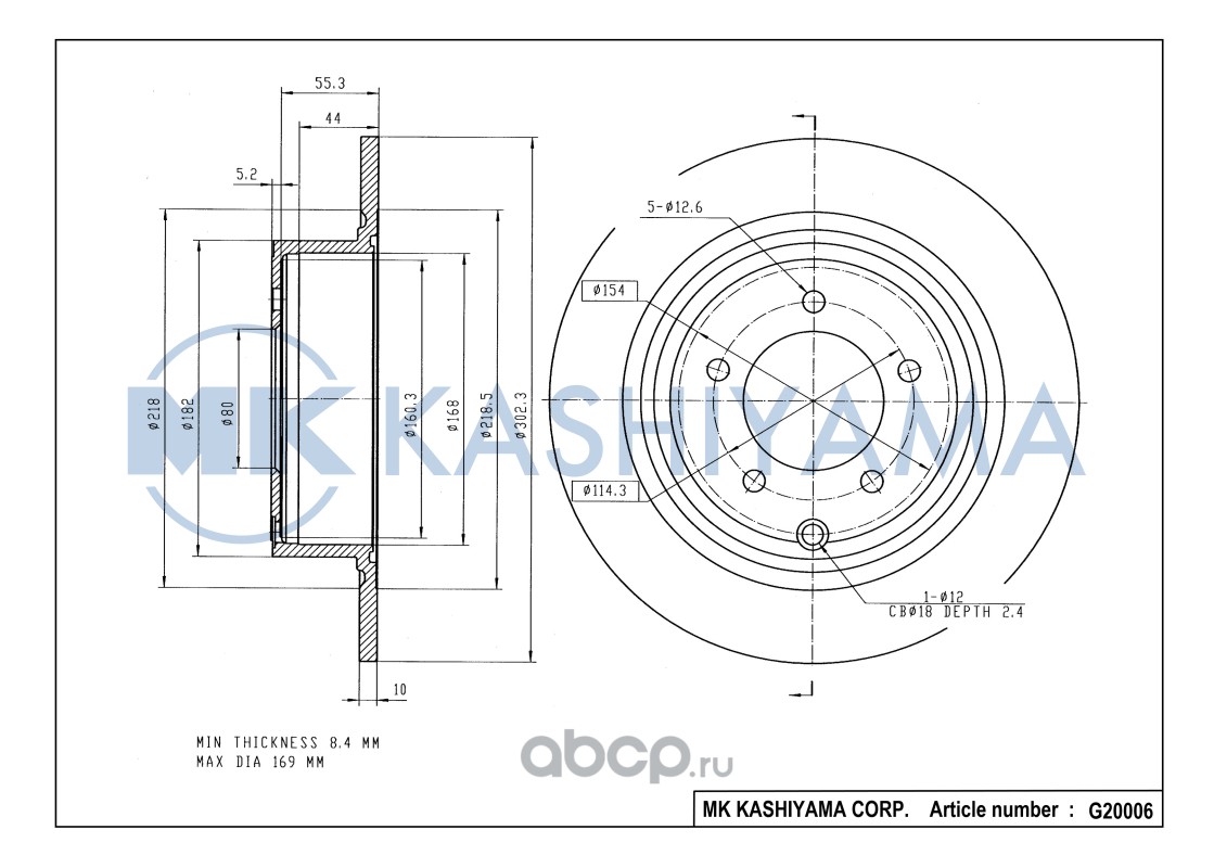 | MK KASHIYAMA | G20006 | Диск тормозной задний[302,3x10] | ||